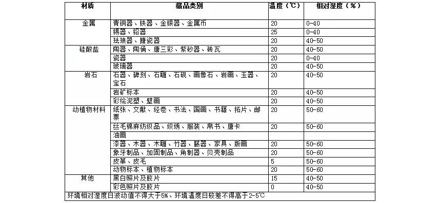 【表1 博物館文物藏品保(bǎo)存環(huán)境溫度、相對(duì)濕(shī)度標準】