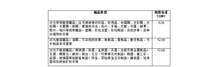 【表2 博物館文物藏(cáng)品保存環境光照水(shuǐ)平標準】